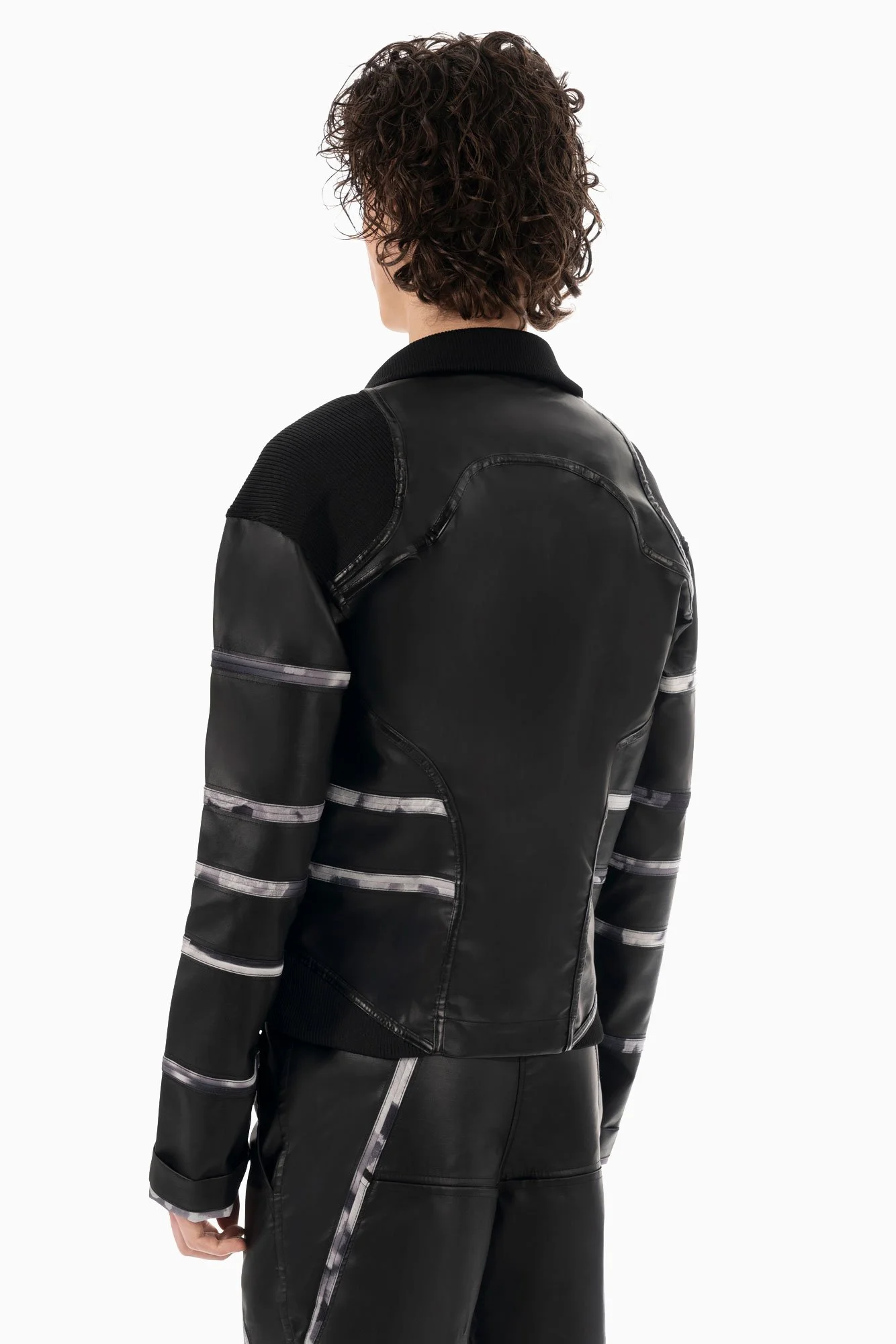 Signature tailored jacket in vegan leather. Fully reversible design. “GLÜCK” all over print on the inside. “GLÜCK” print inspired by the club stamp of an iconic Berlin nightclub. “GLÜCK” is German and means fortune, luck, and happiness.